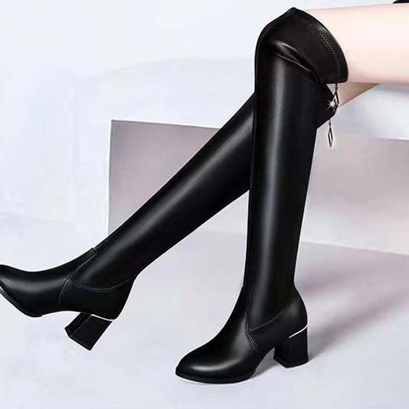 🔥50% korting🔥Zwarte overknee laarzen met hak
