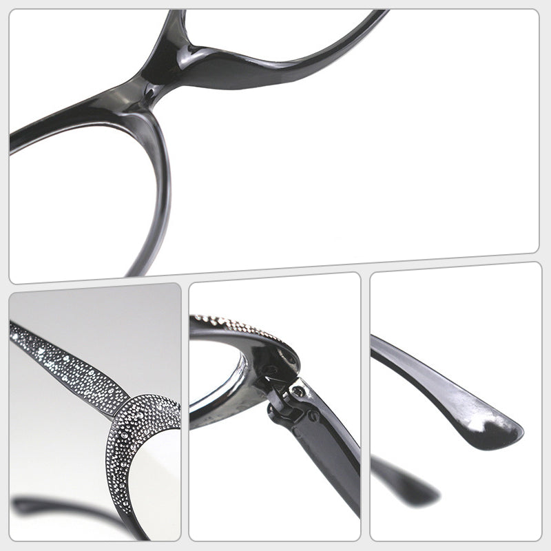 MODIEUS CAT-EYE-ONTWERP : Met een elegant strass-steentje op het strakke cat-eye-montuur voegt deze bril een vleugje glamour toe aan uw look en biedt tegelijkertijd essentiële oogbescherming tijdens het werk of lezen.
