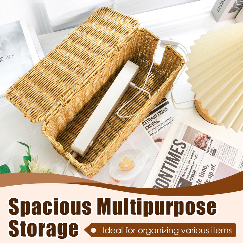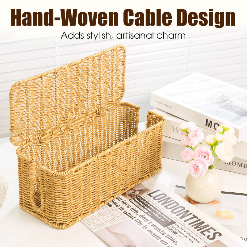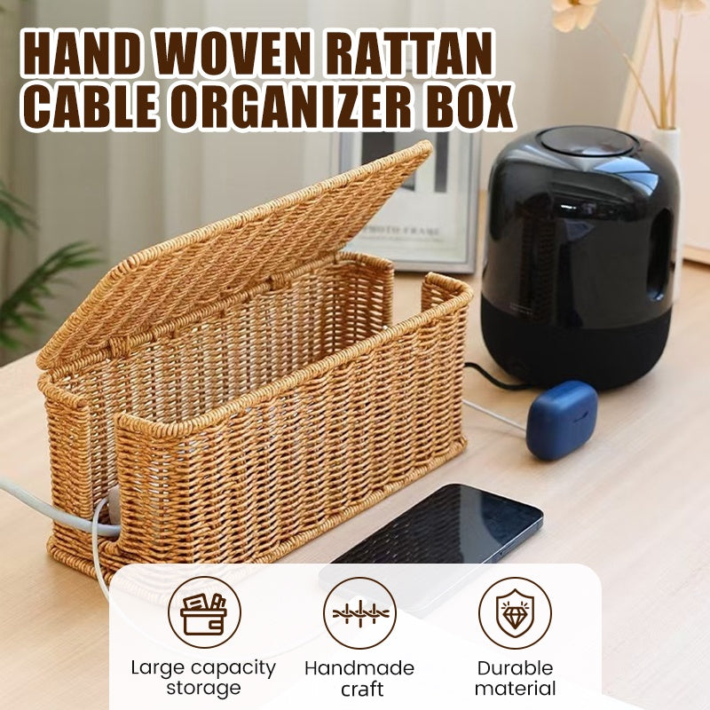 🔥50% korting🔥Handgeweven rotan kabel organizer box met deksel