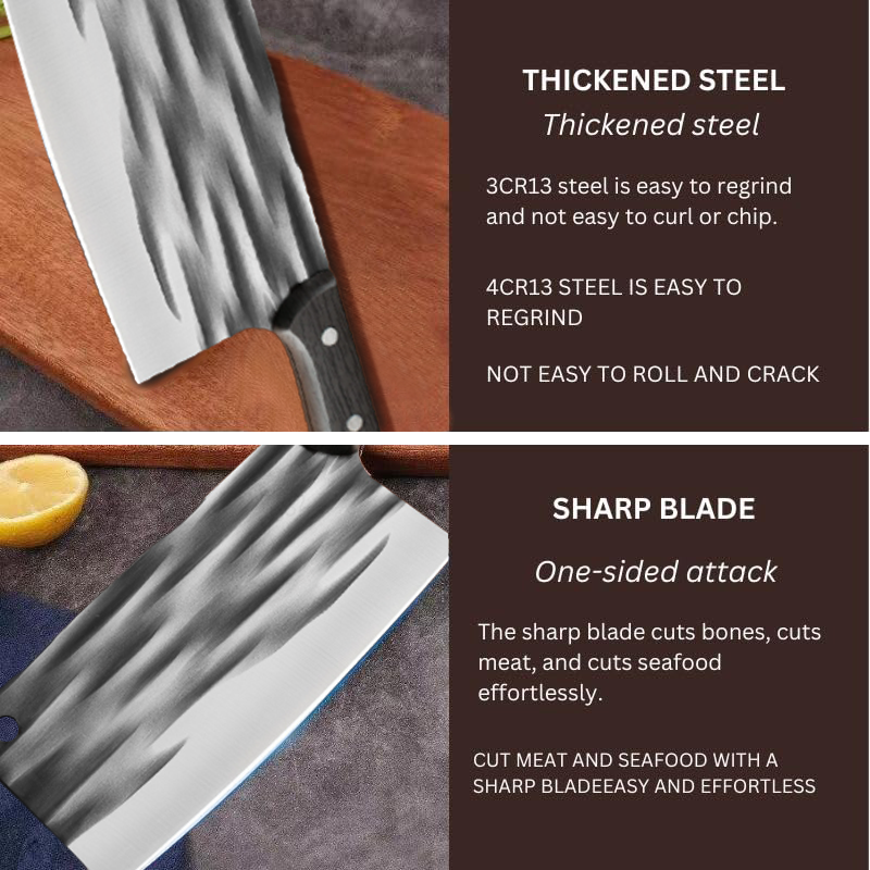 Vakkundig vervaardigd uit hoogwaardig roestvrij staal met hoog koolstofgehalte: biedt superieure sterkte, uitzonderlijke scherptebehoud en een lange levensduur. Corrosiebestendig, dus perfect voor dagelijks gebruik – geen zorgen over roest of slijtage!