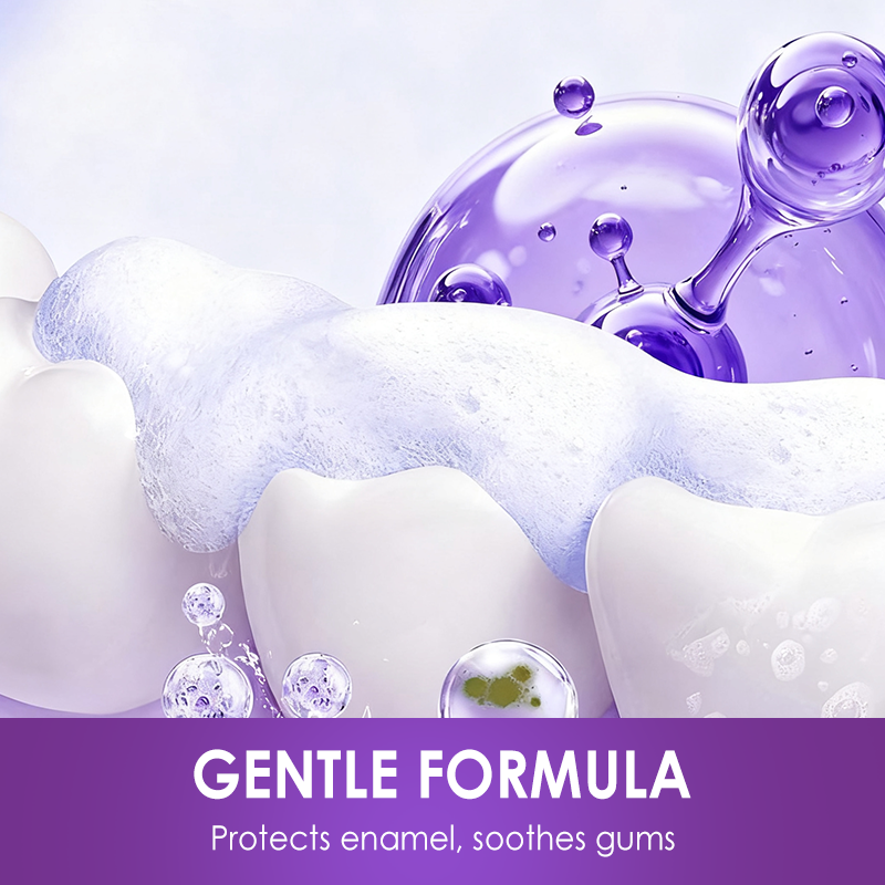De niet-giftige en niet-irriterende formule maakt tanden mild witter, terwijl de gezondheid van het tandglazuur behouden blijft. Beschermt tegen gevoeligheid, ondersteunt de verzorging van het tandvlees en zorgt voor een veilige, kalmerende reinigingservaring die geschikt is voor dagelijkse mondverzorgingsroutines.