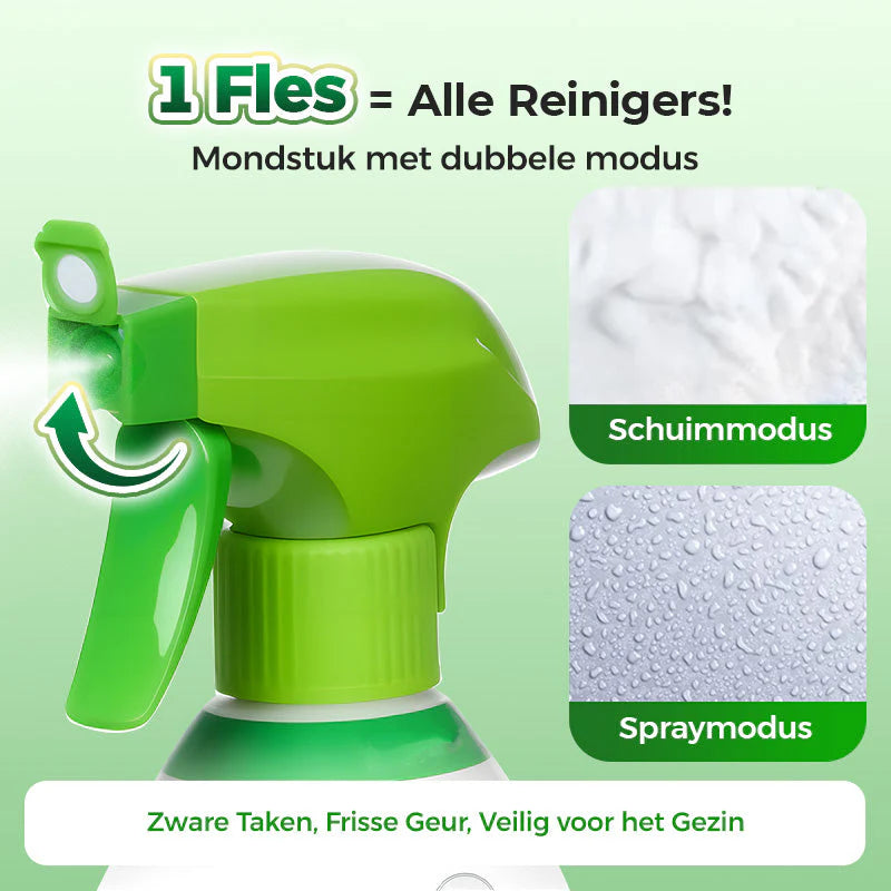 DUBBELE MODI - Kies uit twee opties: een fijne nevel voor algemene reiniging of schuim voor het aanpakken van hardnekkiger vlekken. Dankzij deze veelzijdigheid heb je de perfecte reinigingsmethode voor elke behoefte.