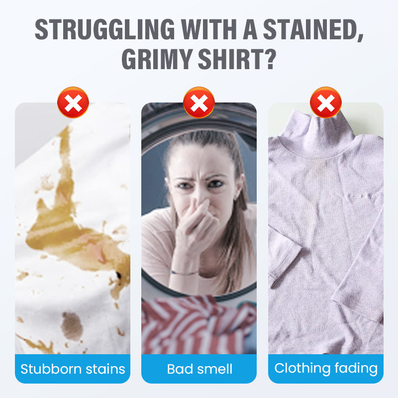 • Blijven hardnekkige vlekken (modder, eten, zweet) in kleding hangen, ongeacht hoe vaak je ze wast? 🧺❌