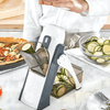 [Multifunctioneel]Ā Ā De messen bieden flexibiliteit om gemakkelijk fruit en groenten in vormen en maten te snijden, snijden, versnipperen en hakken.Ā Ā Zoals een aardappel, je kunt er gemakkelijk golvende of normale plakjes van maken, reepjes maken of pureren.