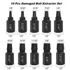 10-delige Schroefverwijderaar Set - Deze set bevat verwijderaar in verschillende maten, variërend van 1/8 inch (3,5 mm) tot 13/32 inch (10,3 mm), met stappen van 1/32 inch.