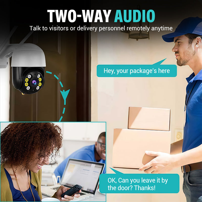 TWEEWEGAUDIO – Spreek met bezoekers, bezorgers of iedereen op uw terrein, waar u ook bent. Geef instructies, begroet gasten of waarschuw indringers in realtime. Deze interactieve functie transformeert passieve monitoring in tweewegcommunicatie, wat u extra controle en gemak geeft.